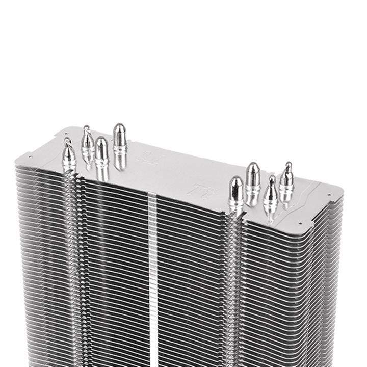 Optimized 0.4mm thickness aluminum fins with 2.2mm air gap, and 4 x Ø6mm solid copper heat-pipes are designed for rapid heat dissipation, allowing maximum heat conductivity. The tower’s side flow design delivers the best cooling performance. In addition, the heat-pipes are in continuous direct contact with the CPU to ensure fast and efficient heat dissipation.
