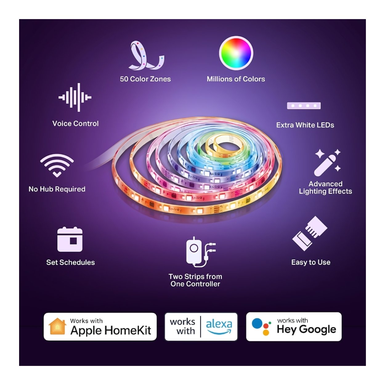 As Tapo’s first Light Strip that supports Apple HomeKit, it enables users to control it via multiple devices using simple vocal commends. Try control your smart home with Siri.