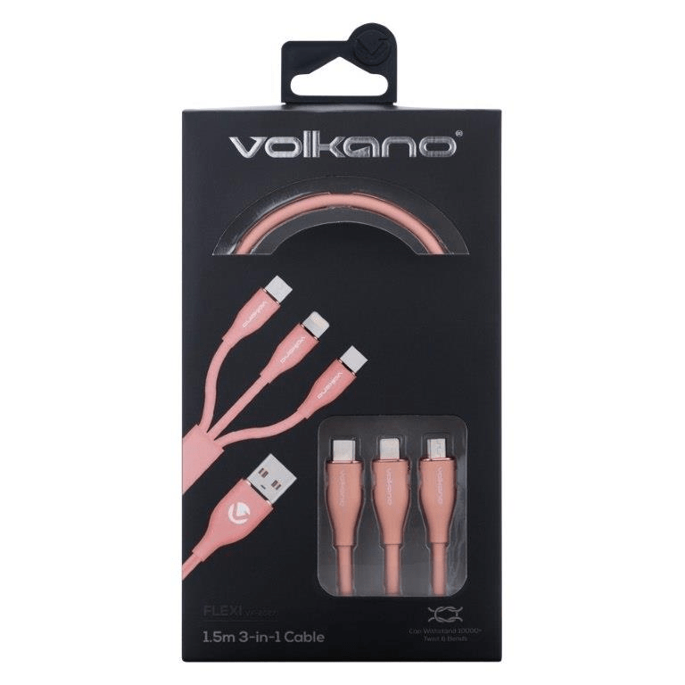 Upgrade your charging experience with the Volkano Flexi Series 3-in-1 Charging Cable your ultimate solution for powering multiple devices in style.
