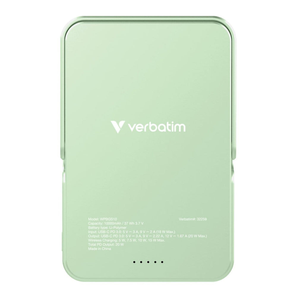 Verbatim Charge n Go 10,000mAh Magnetic Wireless Charging Power Bank Glass with Stand Green 32259