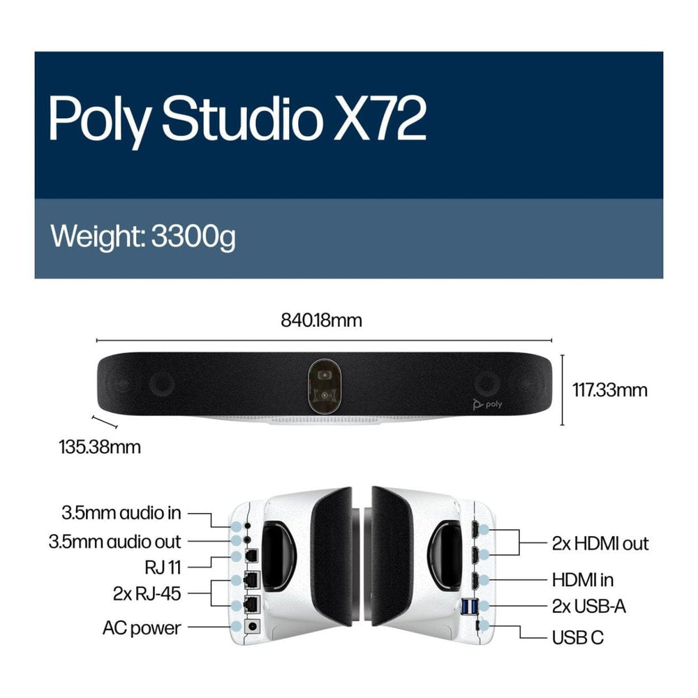 POLY Studio X72 All-In-One Video Bar with TC10 Controller Kit