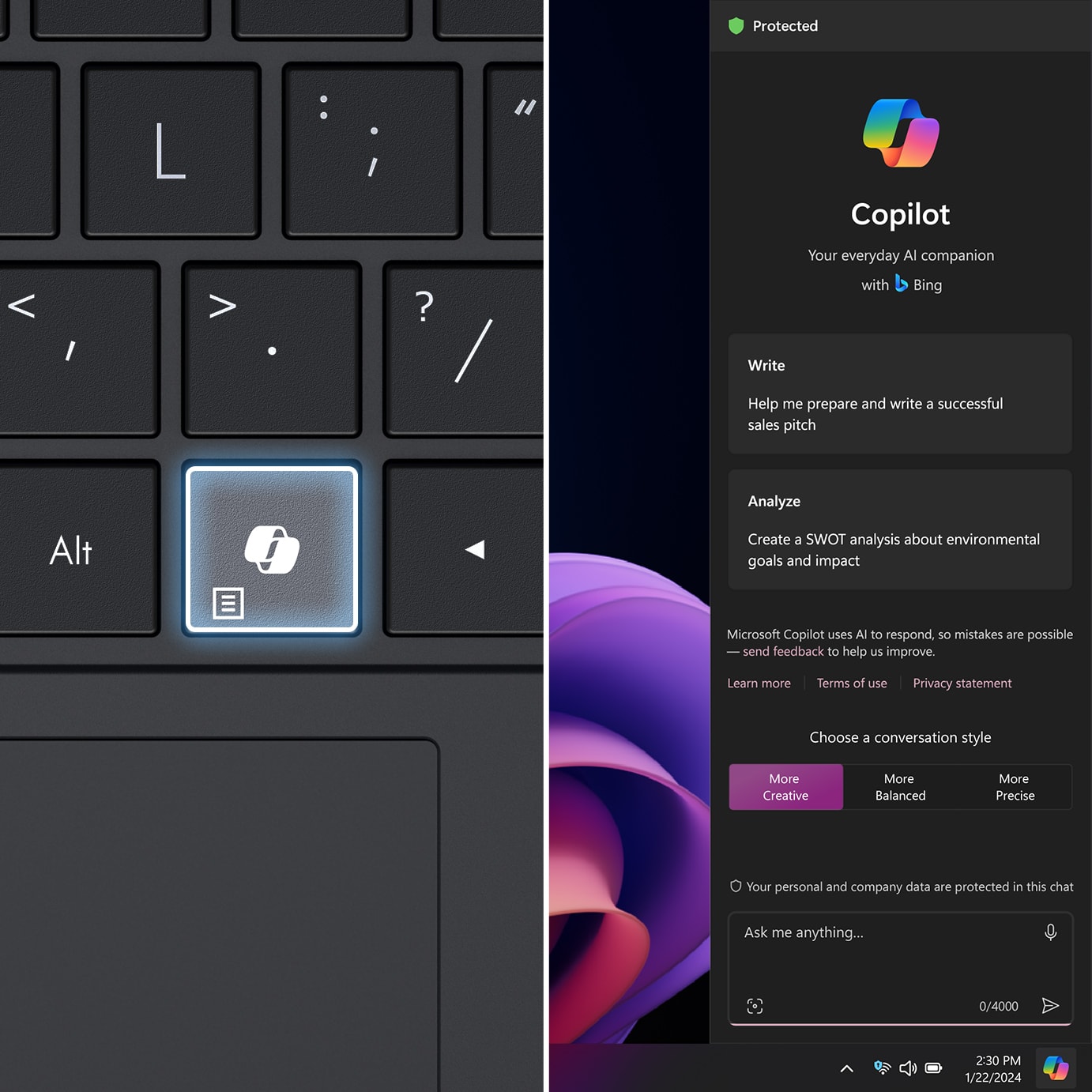 Microsoft Copilot with commercial data protection is your AI assistant at work. Supercharge your productivity and achieve more with less time and effort using Copilot. Experience your everyday AI companion now with the dedicated Copilot key. Just one click for endless exploration.