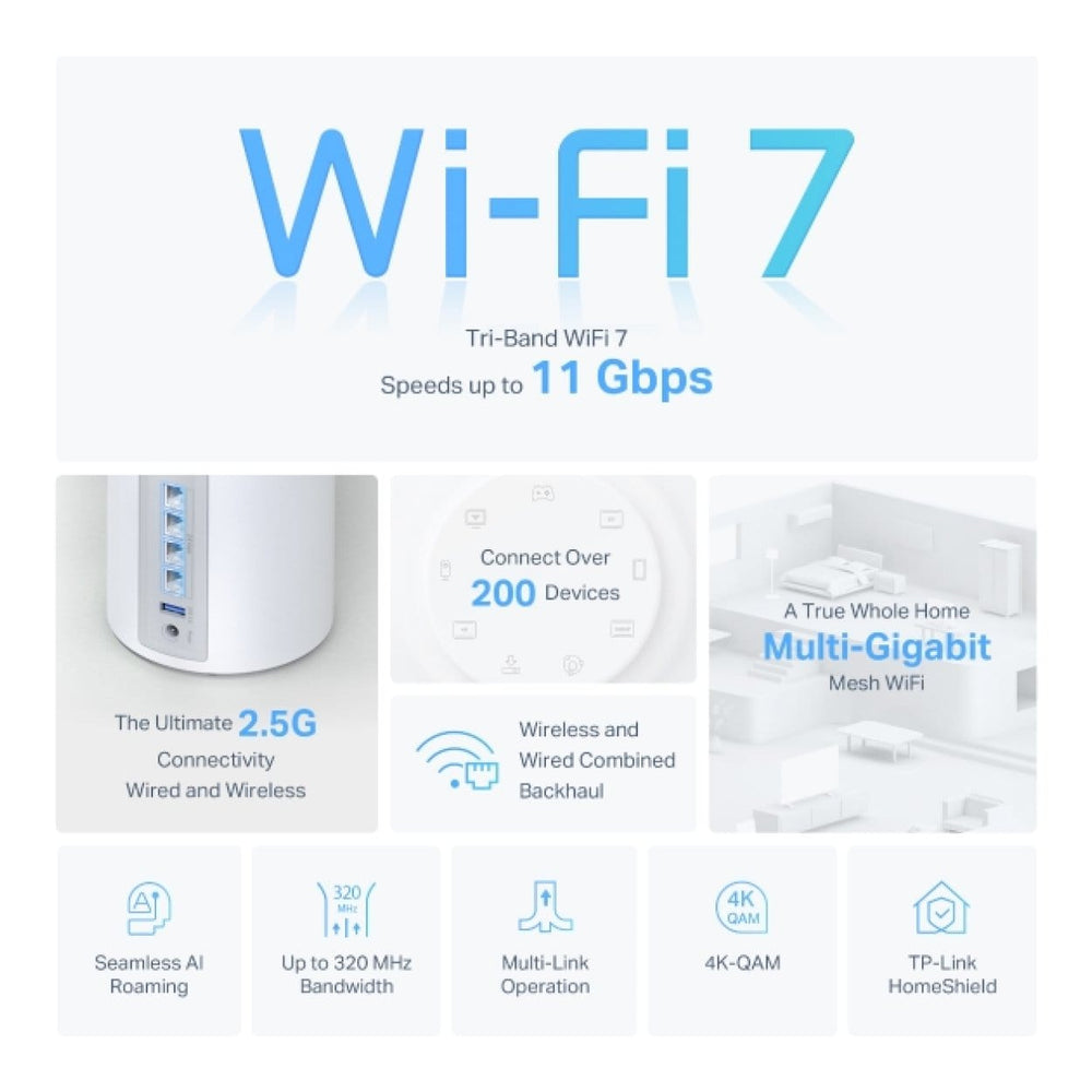 Advanced Wireless Features: Multi-Link Operation (MLO); 320 MHz channel; 4K-QAM; multi-RUs; works with Alexa and Google Assistant