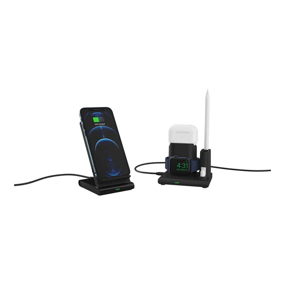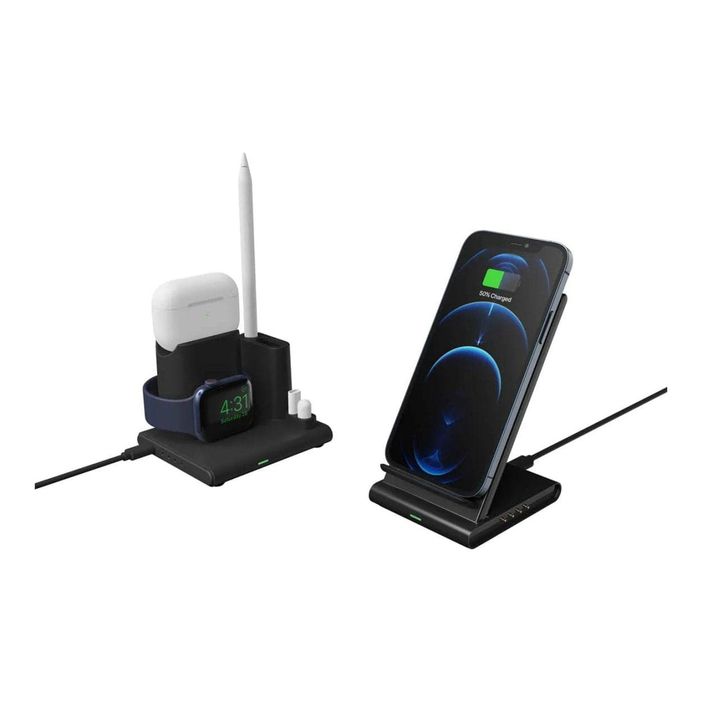 4-in-1 Fast Wireless Charging station, designed for simultaneous charging of multiple Apple and Android devices. Perfect for charging iPhone/Apple Watch/AirPods/Apple Pencil (Gen 1) at the same time. Charge your iPhone (7.5W) or Android (15W) wirelessly in the vertical or horizontal position.
