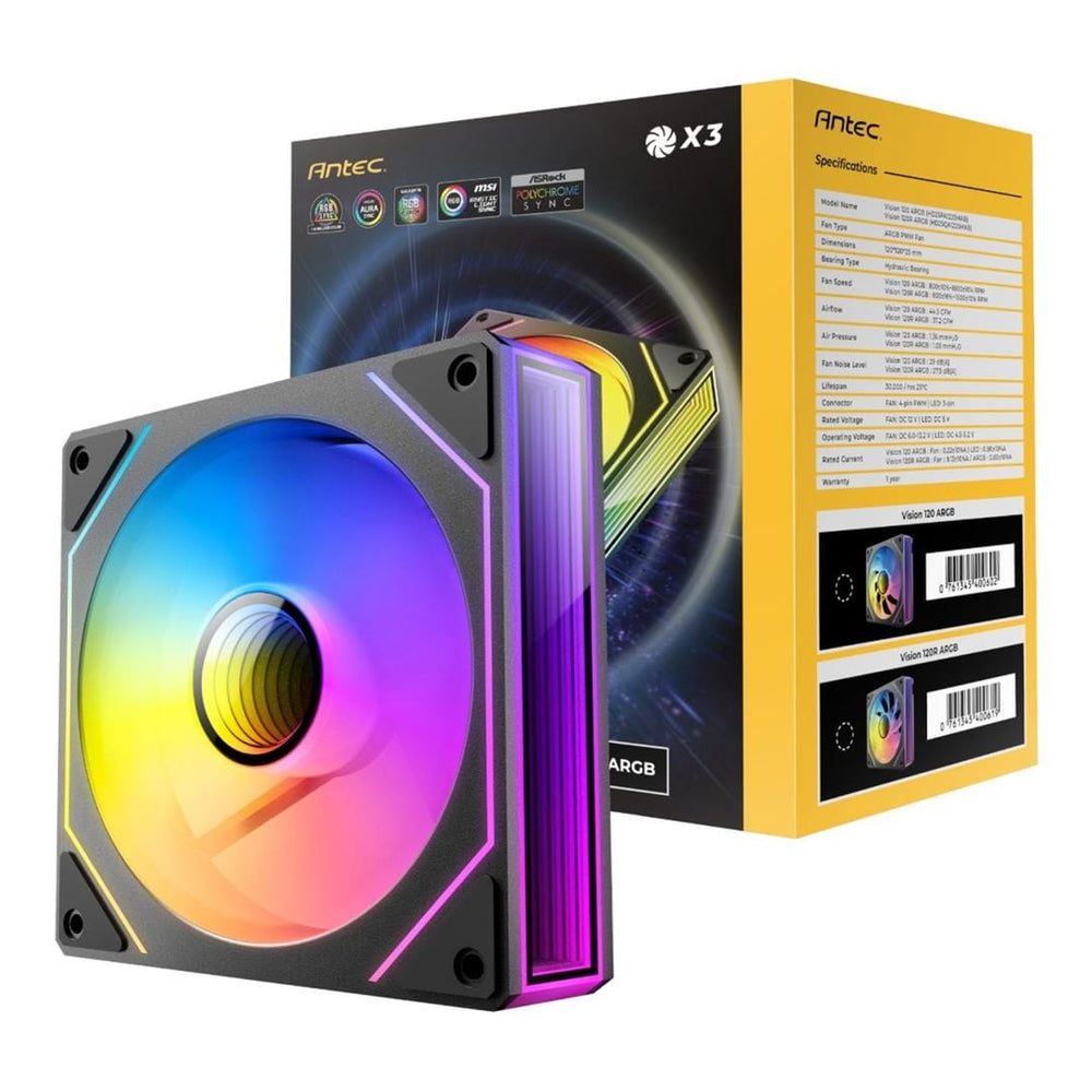- Antec VISION 120 ARGB PWM Infinite Mirror Fan – Black x3