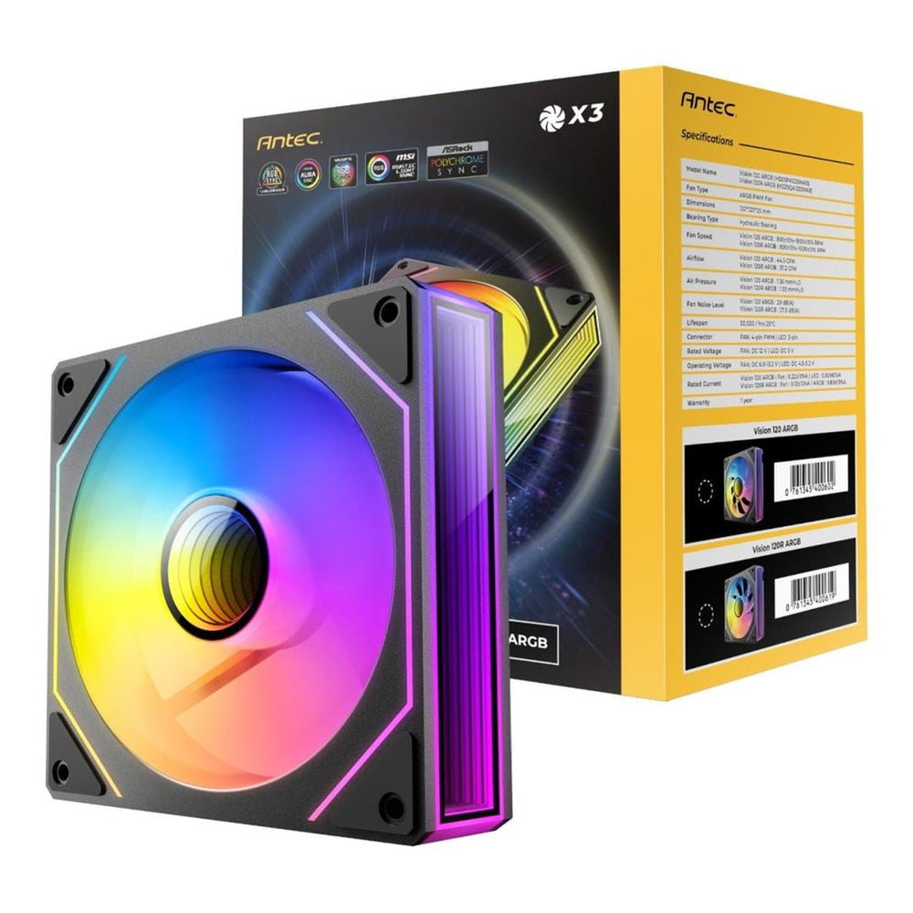 Antec’s VISION 120R ARGB Reverse PWM fan is more than just a cooling solution; it’s a statement. Designed for PC enthusiasts who demand both performance and aesthetics, this three-pack transforms your computer into a showcase of vibrant colour and mesmerizing visual effects. The infinite mirror design creates an illusion of endless depth, captivating onlookers and setting your build apart. This Antec Vision 120 is an ideal 120mm PC fan for any system.
