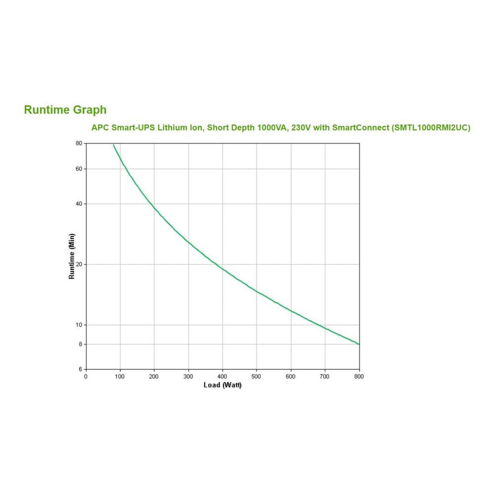 You can easily read the expected battery life in the runtime graph, which you can find between the product images. This way you can easily see how long the UPS will supply emergency power at a certain load.