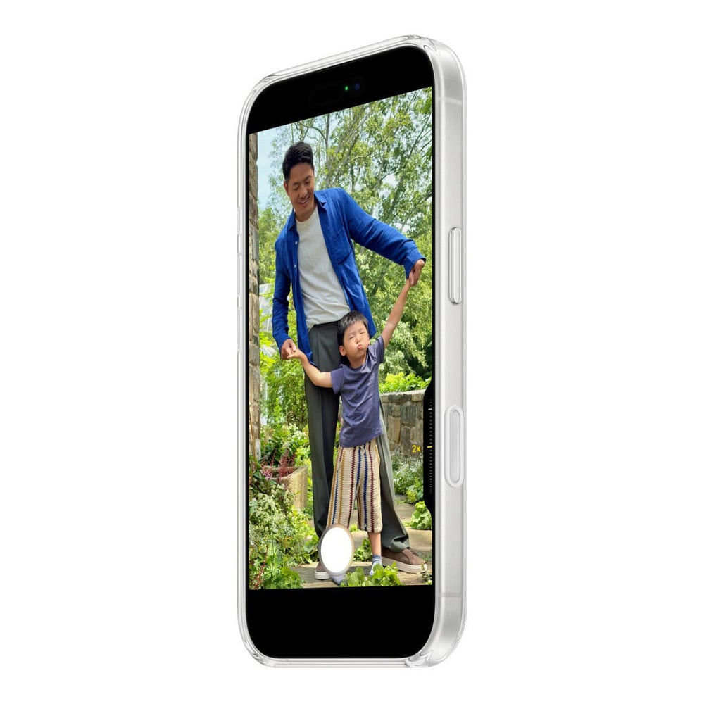 Crafted with a blend of optically clear polycarbonate and flexible materials, the case fits over the buttons for easy use. This case works seamlessly with Camera Control. It features a sapphire crystal coupled to a conductive layer to communicate finger movements to Camera Control.