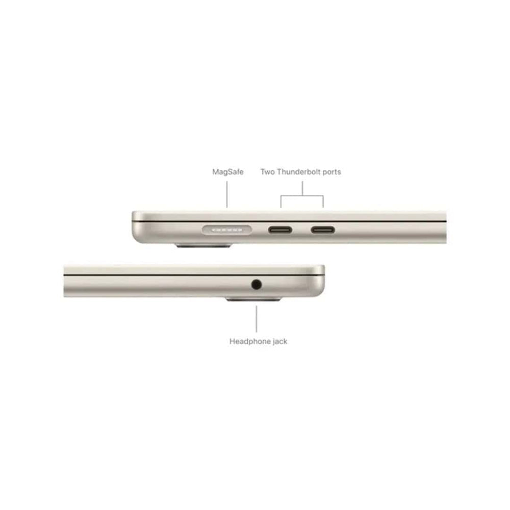 MacBook Air features two Thunderbolt ports, a headphone jack, Wi-Fi 6E, Bluetooth 5.3 and a MagSafe charging port and connect up to two external displays with the laptop lid closed.