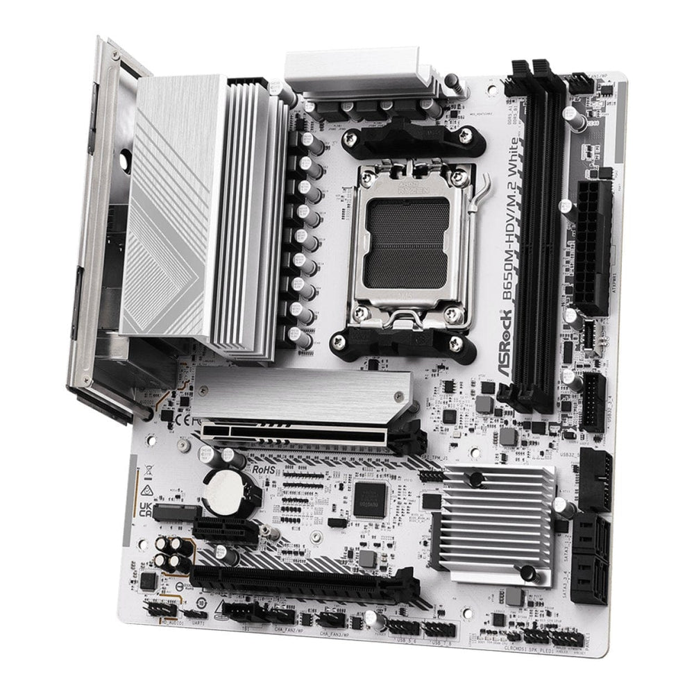 - ASRock B650M-HDV/M.2 AM5 Micro-ATX Motherboard – White x1