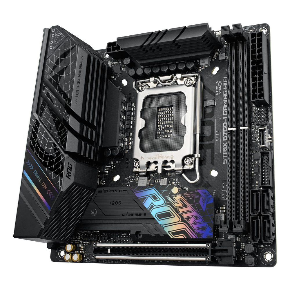 The black shrouds and PCB of the Strix B760-I pair well with most products from the diverse ROG ecosystem, all while making your build distinct with a dash of polychromatic contrast.