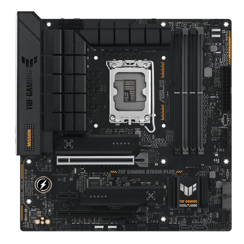 TUF GAMING B760M-PLUS takes all the essential elements of the latest Intel® processors and combines them with game-ready features and proven durability. Engineered with military-grade components, an upgraded power solution and a comprehensive cooling system, this motherboard goes beyond expectations with rock-solid performance for marathon gaming. TUF GAMING motherboards also undergo rigorous endurance testing to ensure that they can handle conditions where others may fail. Aesthetically, this model incorporates an embossed nameplate and geometric design elements to reflect the dependability and stability that defines the TUF GAMING series.