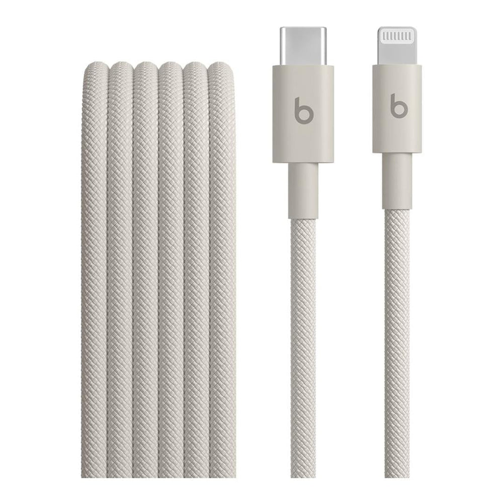 Elevate your charging experience with the Beats USB-C to Lightning Woven Cable in stylish Surge Stone. Spanning 1.5 meters (5 ft), it features a premium braided design that resists tangles and frays. Ideal for charging, syncing, and using Apple CarPlay on compatible iOS devices.