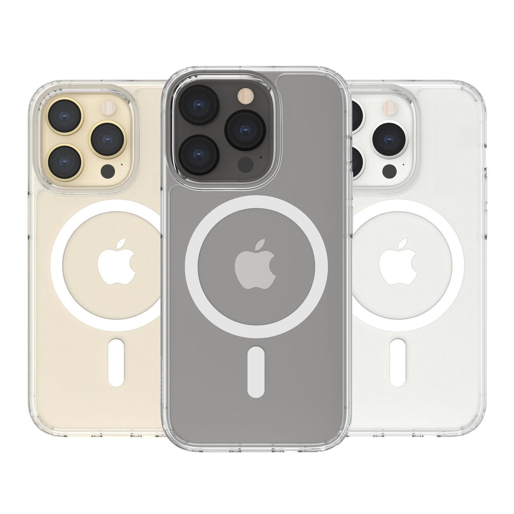 Protect your new iPhone 14 with a MagSafe-compatible, magnetic phone case. The clear, UV light-resistant material prevents discoloration, and the raised-edge design offers superior scratch protection for your screen and camera.