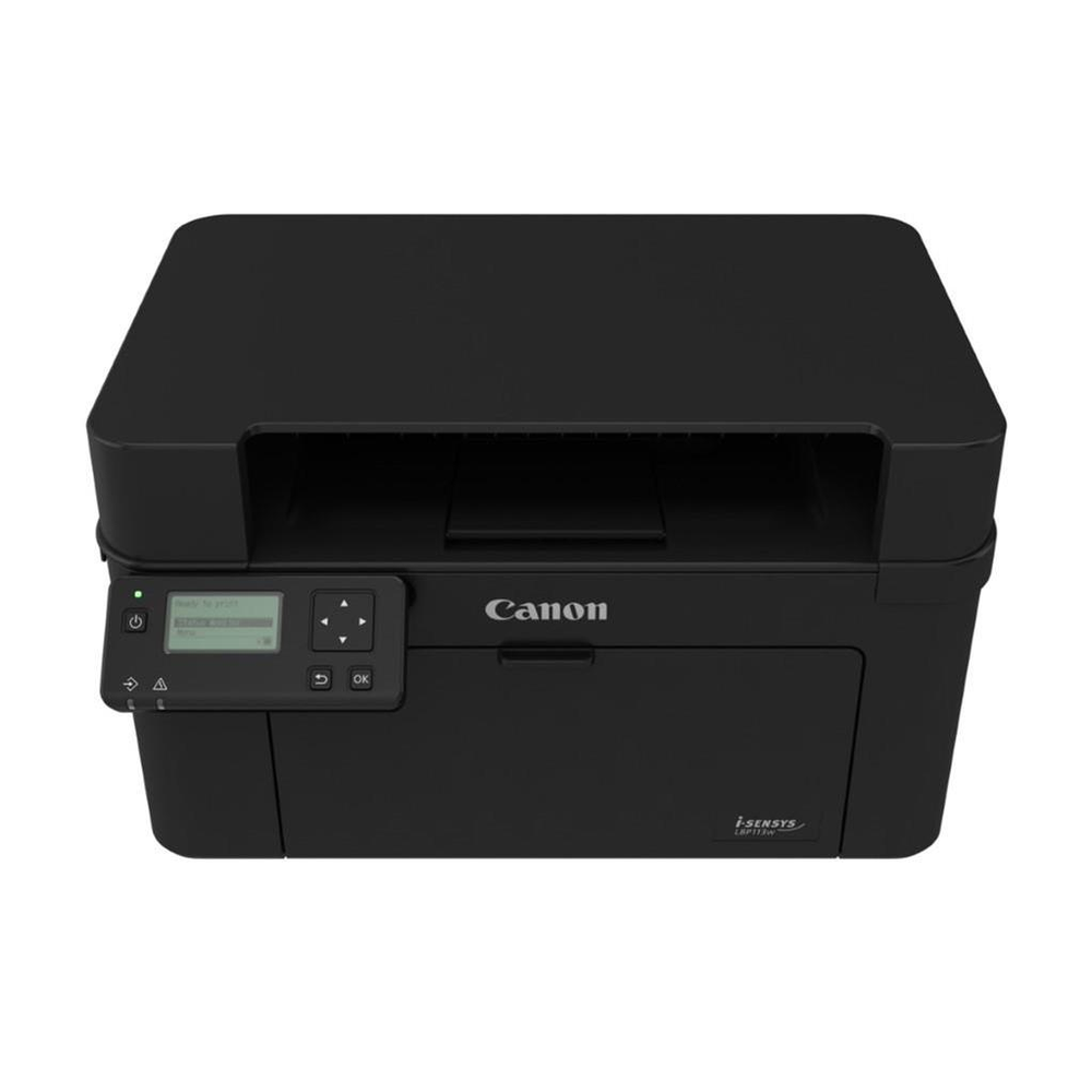 Canon i-SENSYS LBP113w. Print technology: Laser, Number of print cartridges: 1, Maximum duty cycle: 10000 pages per month. Maximum resolution: 2400 x 600 DPI. Maximum ISO A-series paper size: A4. Print speed (black, normal quality, A4/US Letter): 22 ppm. Display: LCD. Network ready, Wi-Fi. Product colour: Black