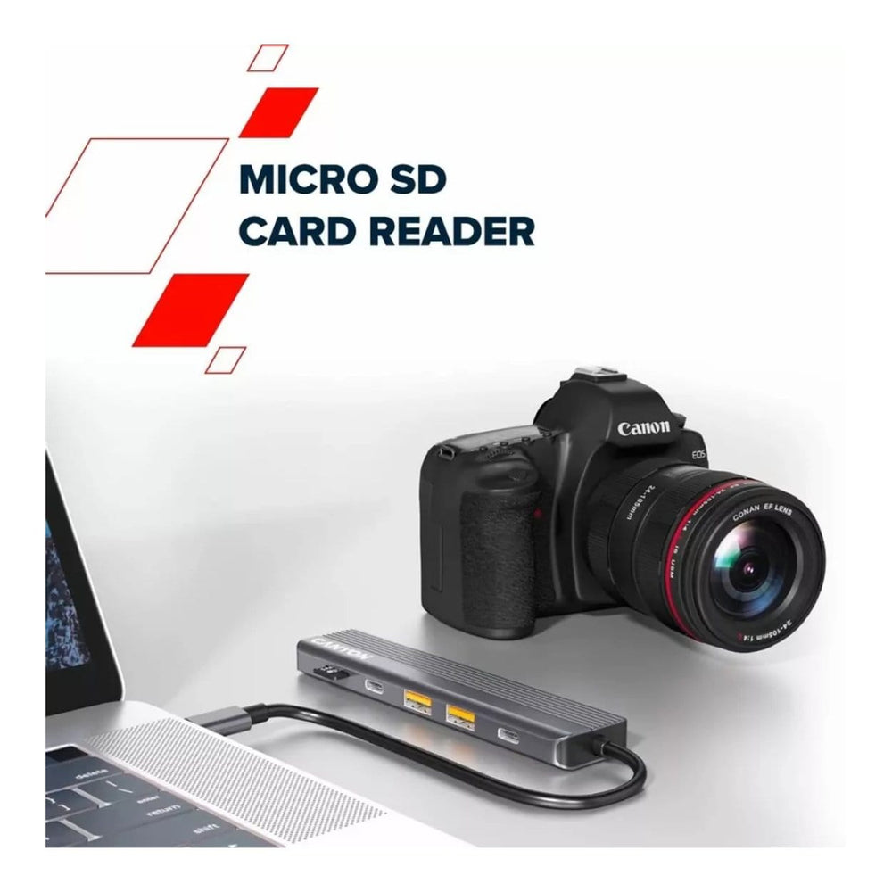Experience unparalleled connectivity and productivity with our Ultimate USB Hub, designed to meet the demands of modern professionals and tech enthusiasts. This compact hub features an input Type-C port and six versatile outputs, ensuring all your devices and peripherals are seamlessly connected. Enjoy stunning visuals with the HDMI port that supports 4K Ultra HD at 60Hz. Transfer data at lightning-fast speeds with two USB-A 3.2 ports, each offering 10Gbps. Additionally, the USB-C port provides 10Gbps for modern devices. Easily access files with the built-in microSD card reader. Keep your devices powered up with PD 100W charging capability. Whether you’re working from home, in the office, or on the go, this USB hub is your all-in-one connectivity powerhouse.