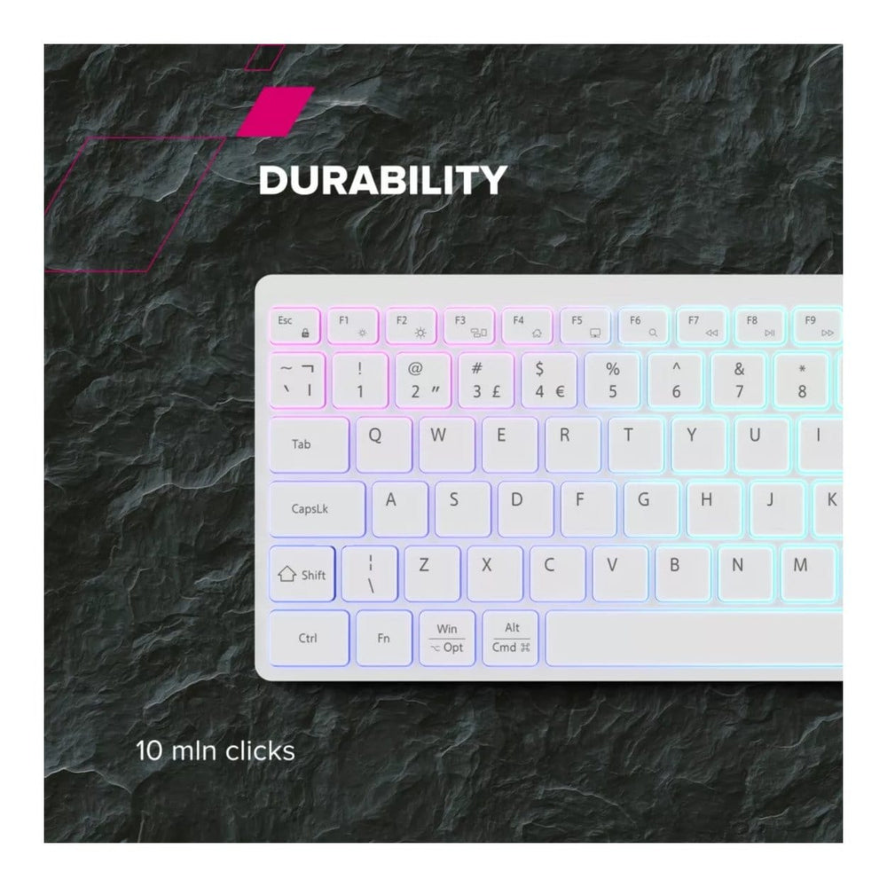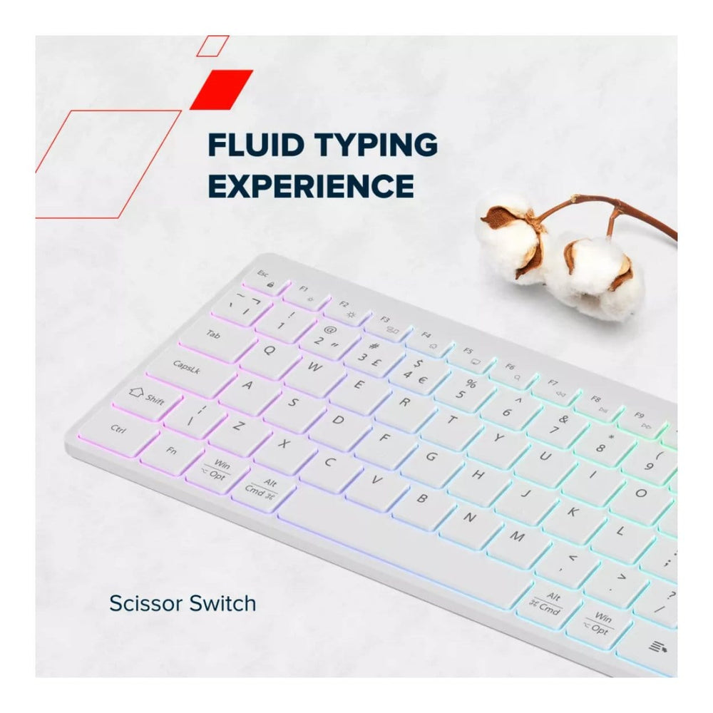 Created with ergonomics in mind, the ultra-slim profile provides a sleek and lightweight feel, making typing more natural and reducing wrist strain. The compact yet full-size layout will maximize comfort and efficiency when you're working at a desk or on the go.