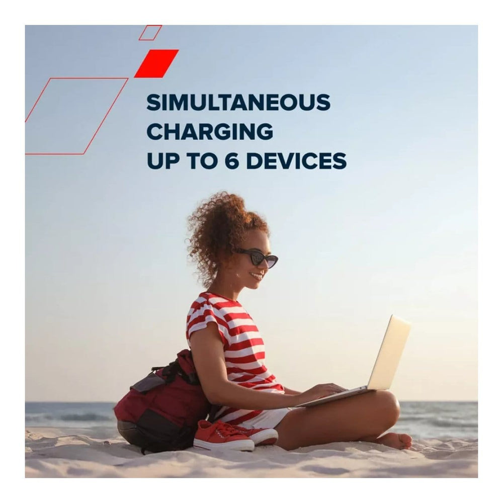 Got a phone, a laptop, and maybe a tablet? You can charge four devices simultaneously with the 3 USB Type C ports and 3 USB (A) port. Share it with friends, family, or just power up your whole tech arsenal at the same time.
