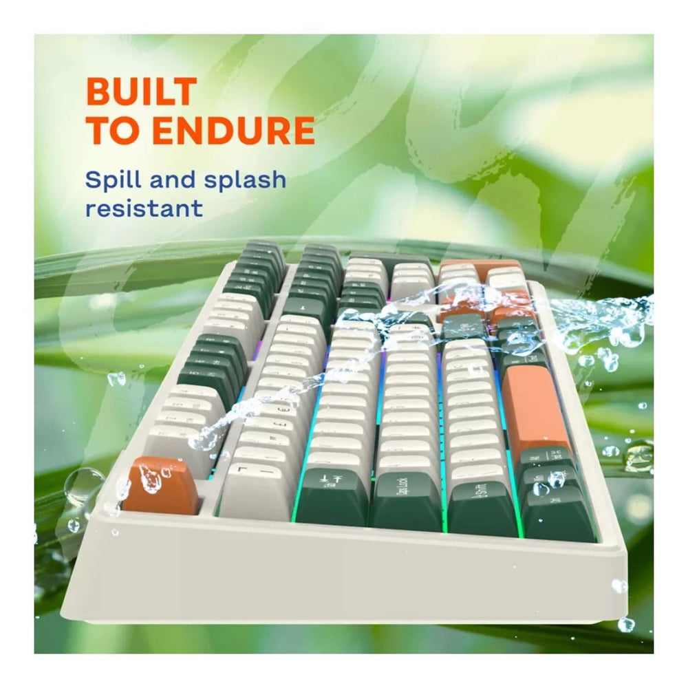 Crafted in a sleek, minimalist manner with a fun colorful finish, this keyboard is equally appealing and functional. It comes in a stylish green & orange design, which really adds to any gaming setup. Its whisper-quiet brown switches provide one-of-a-kind haptic feedback and produce less sound than any other gaming switches. Elevate your gaming aesthetic without compromising performance — you're safe from accidentally pushing the wrong button.