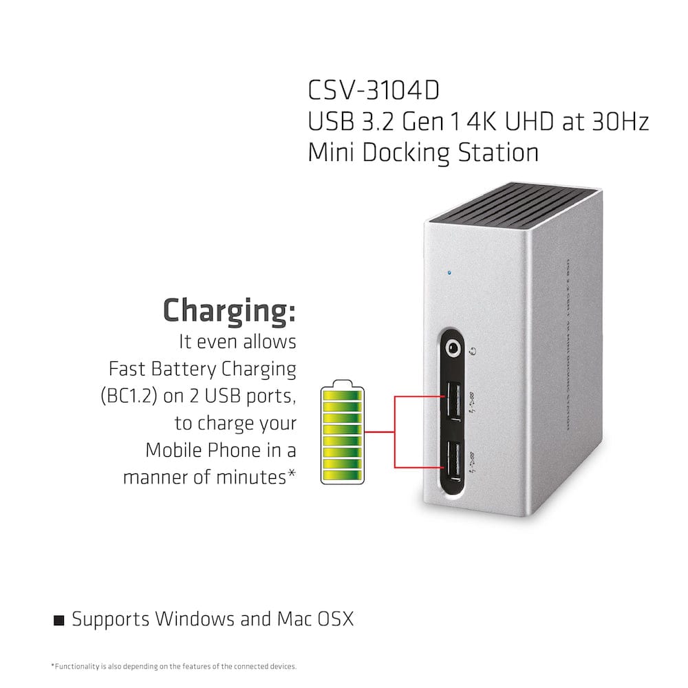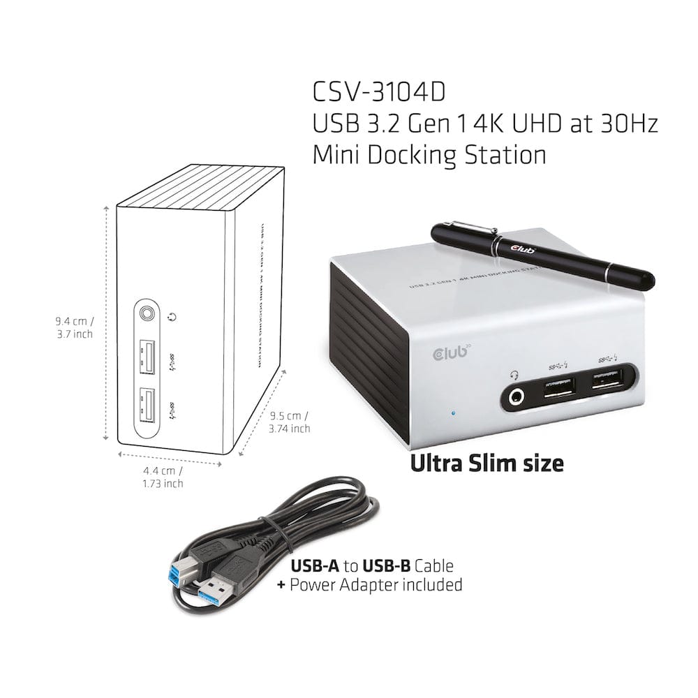 Club 3D USB 3.2 Gen 1 4K UHD at 30Hz Mini Docking Station Ultra Slim Design CSV-3104D