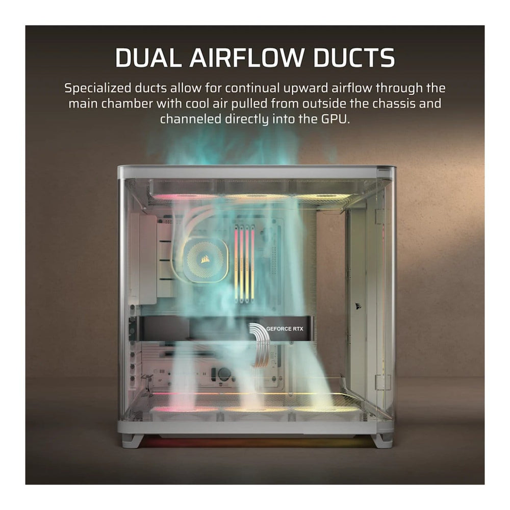 The roomy interior was designed specifically for the most powerful GPUs with plenty of room to breathe and dual airflow ducts to channel cool air through the GPU for maximum performance.