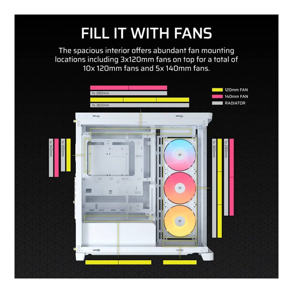 The first CORSAIR case with wraparound glass panels, the front and side panels are made from a single piece of glass, providing an unobstructed, wraparound view of a PC's glorious hardware.