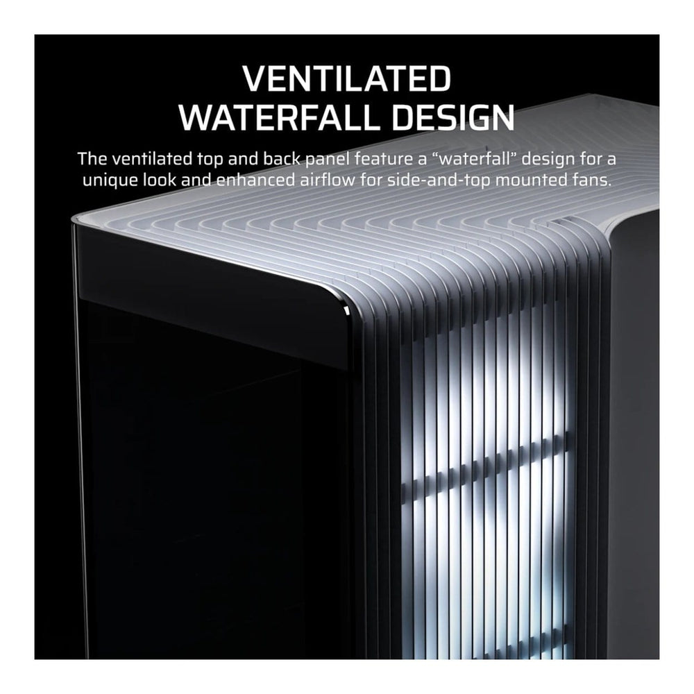Clean lines cascade like a waterfall over the chassis's exterior, offering generous openings for airflow and a unique look that sets it apart.