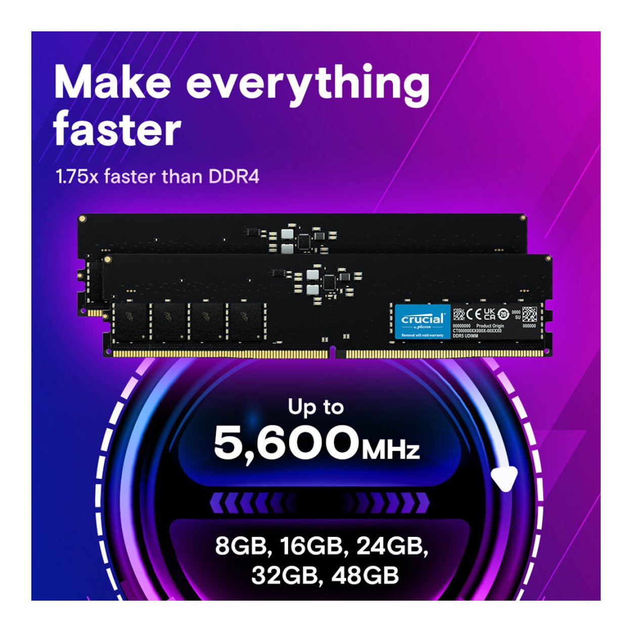 As the vertically integrated consumer brand of Micron, Crucial is trusted by millions for reliability, performance, and compatibility. Unlike module assemblers, our unique relationship with Micron involves a deeper level of engineering collaboration to squeeze every ounce of performance from our products without compromising reliability. With Micron’s 43+ years of manufacturing excellence and Crucial’s 25+ years of consumer product development, Crucial DDR5 is backed by our limited lifetime warranty and delivers the powerful performance you can trust. When it comes to memory, don’t settle for less.