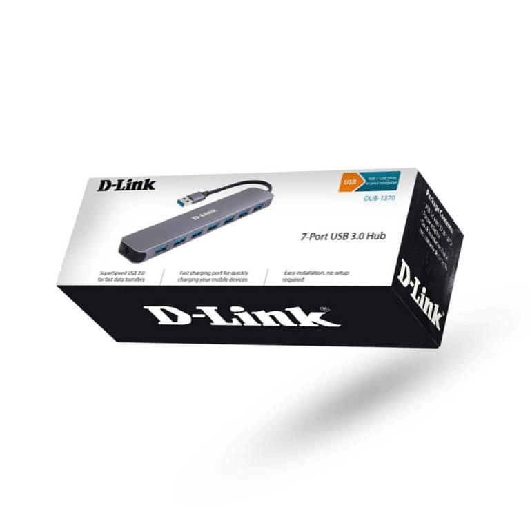 The D-Link DUB-1370 7-Port USB 3.0 Hub provides an easy way to add seven USB 3.0 ports to your notebook or desktop computer. One of the seven USB 3.0 ports supports Fast Charge mode, allowing you to reduce time for charging mobile devices. This means you can charge devices while also connect additional USB devices like digital and web cameras, card readers, hard drives, mice, keyboards, printers, scanners, and other peripherals.