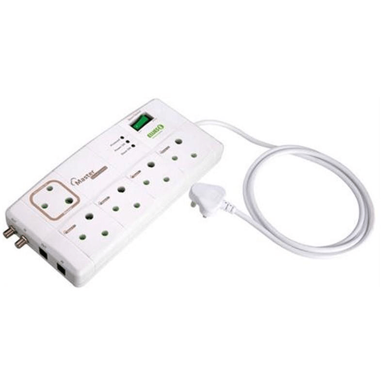 The Ellies Eco Smart Surge Power Block FBLPSG5S4 Satellite and Aerial input with Surge Protection Reduces power wastage from devices on standby mode, Designed to reduce the cost of energy consumption, Constant power supply for Main outlet and Always On outlet