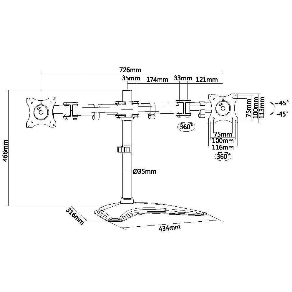 - Max. VESA: 100x100