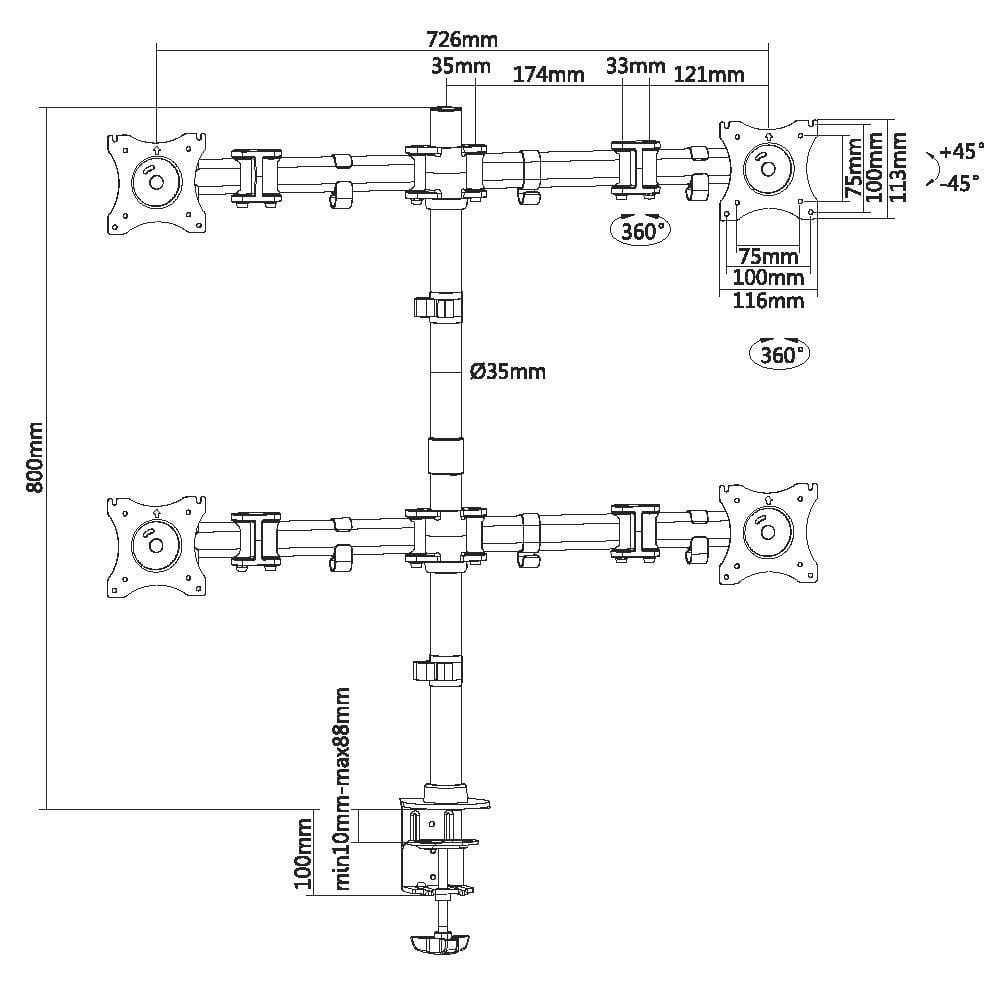 Equip 13-inch to 27-inch Articulating Quad Monitor Desk Mount Bracket 650117
