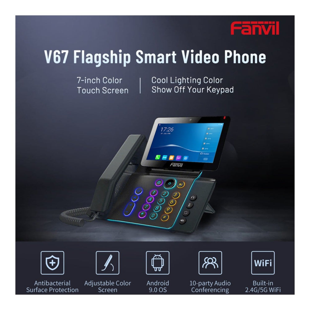 Fanvil V67 | Flagship Smart Android 5MP Video Phone with 7" Adjustable Colour Touch Screen, RGB Keypad, Wi-Fi, Bluetooth, Gigabit and PoE Support