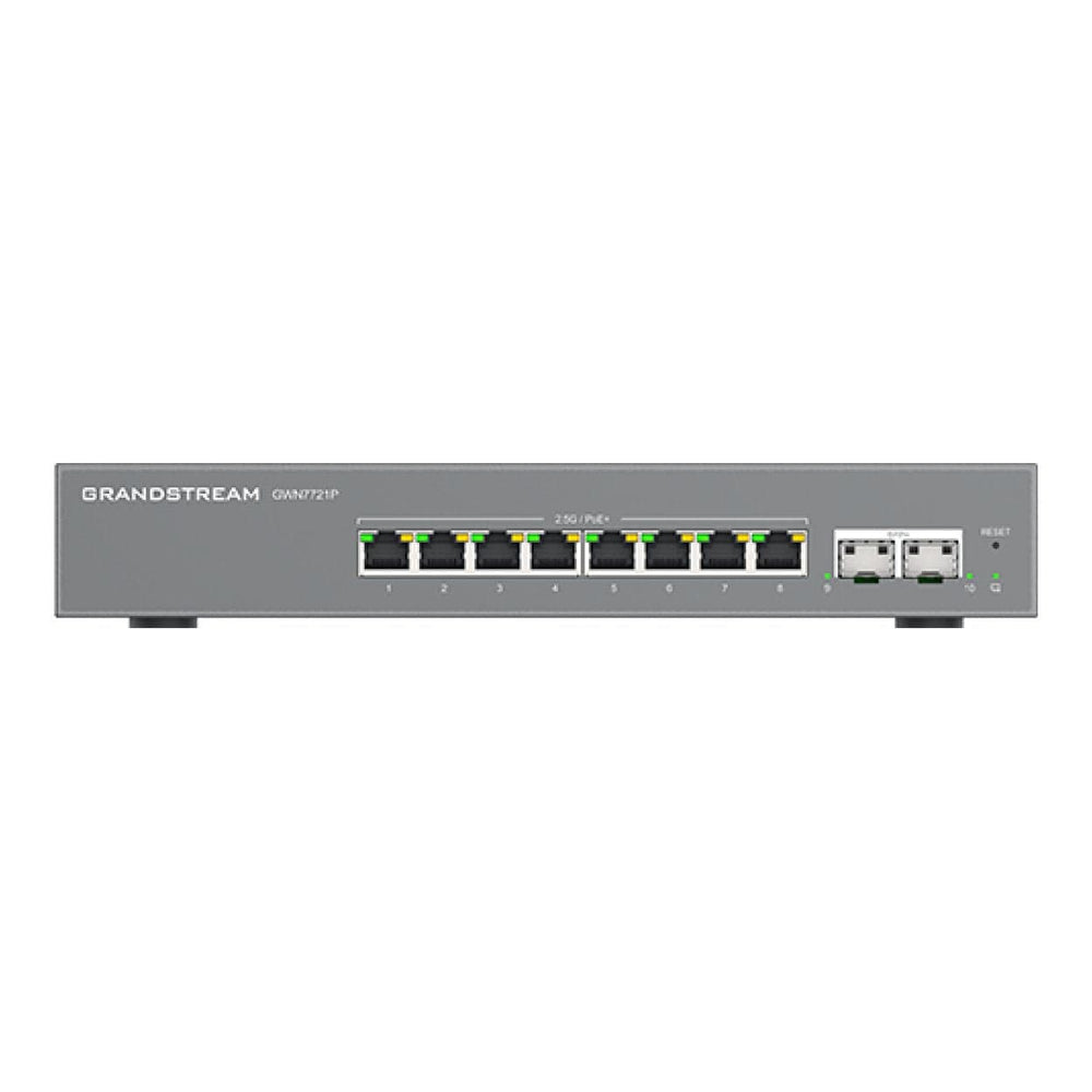 The -GWN7721P id a 10-port Layer 2 Lite Managed Switches equipped with 8 2.5-Gigabit Ethernet ports and 2 10-Gigabit SFP+ ports to allow small-to-medium businesses to build scalable and secure high-speed networks.