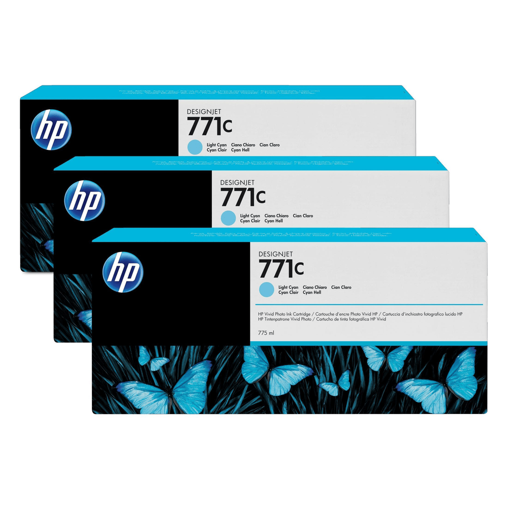 HP 771C 775-ml DesignJet Light Cyan Printer Ink Cartridges Original B6Y36A 3-pack