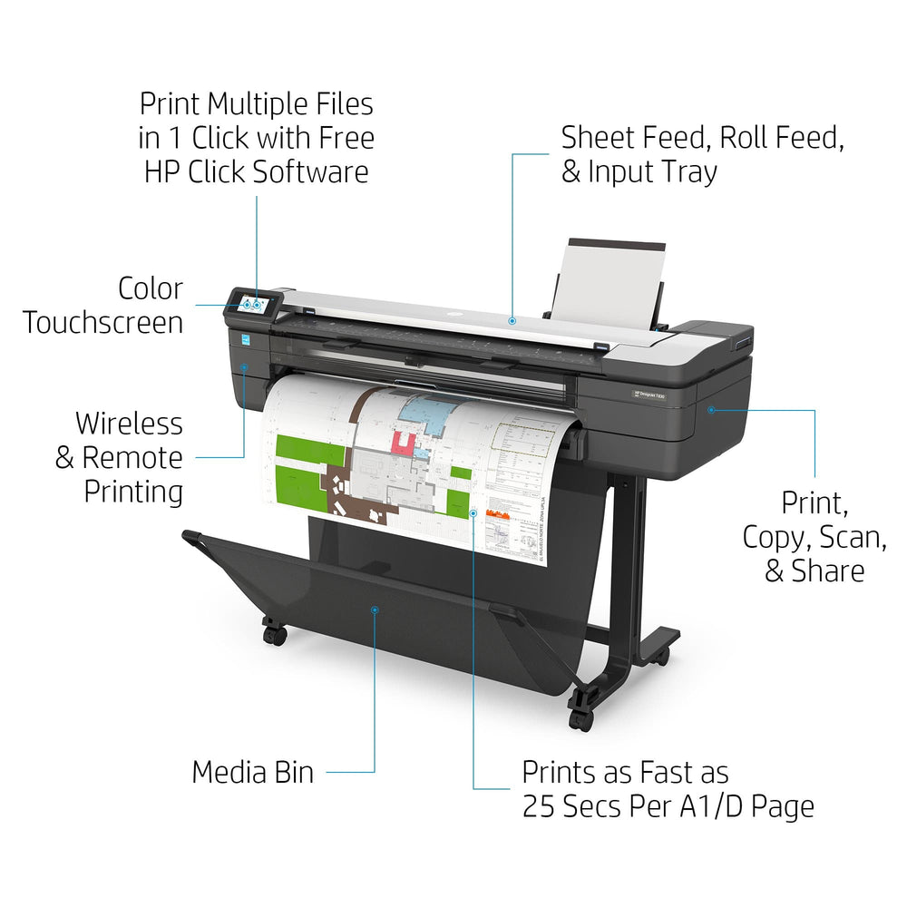 HP Designjet T830 Large Format Printer Wi-Fi Thermal inkjet Colour 2400 x 1200 DPI A0 (841 x 1189 mm) Ethernet LAN