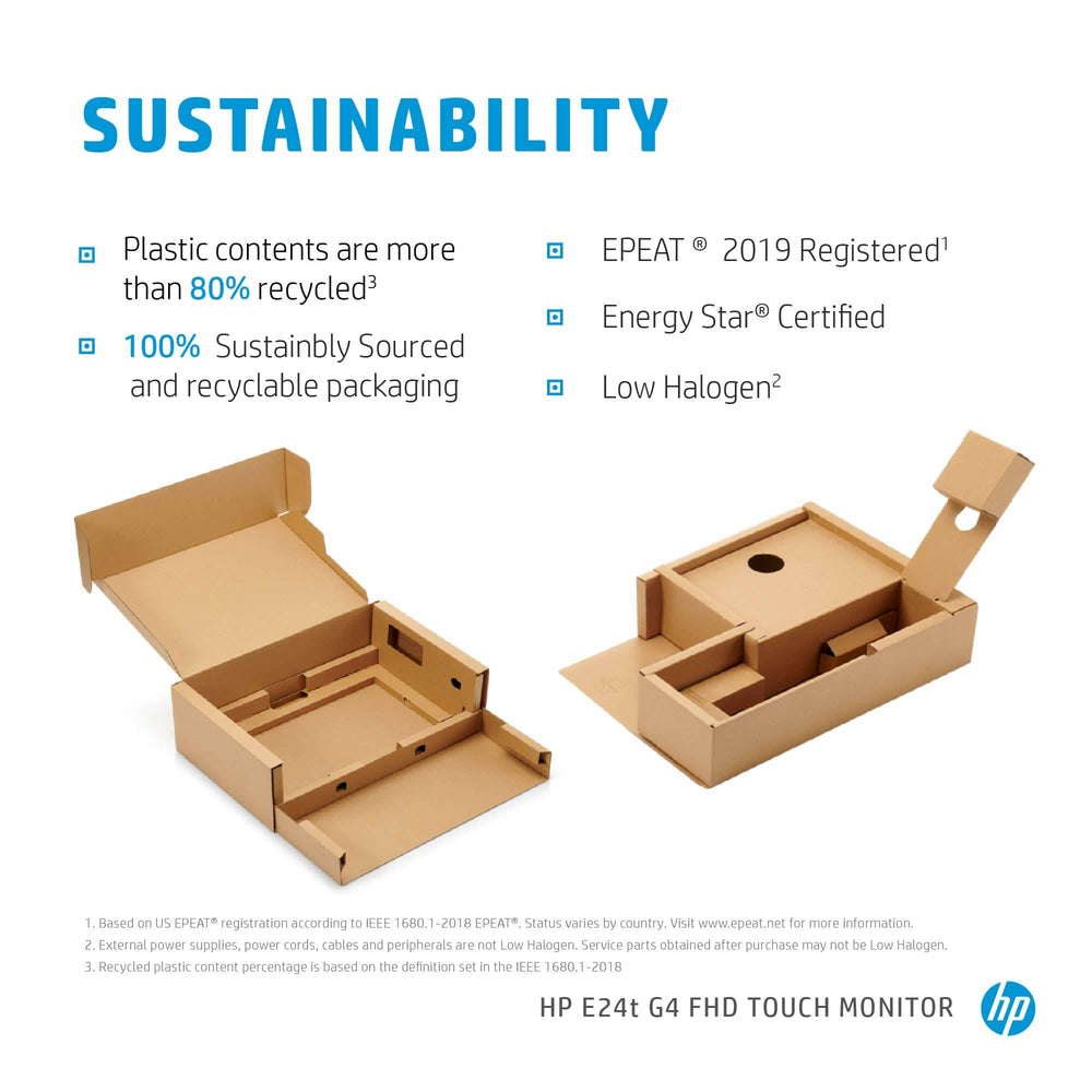 Energy efficiency is built into every ENERGY STAR® certified, EPEAT® 2020 registered, and low halogen display. We go one step further with 100% recyclable packaging.