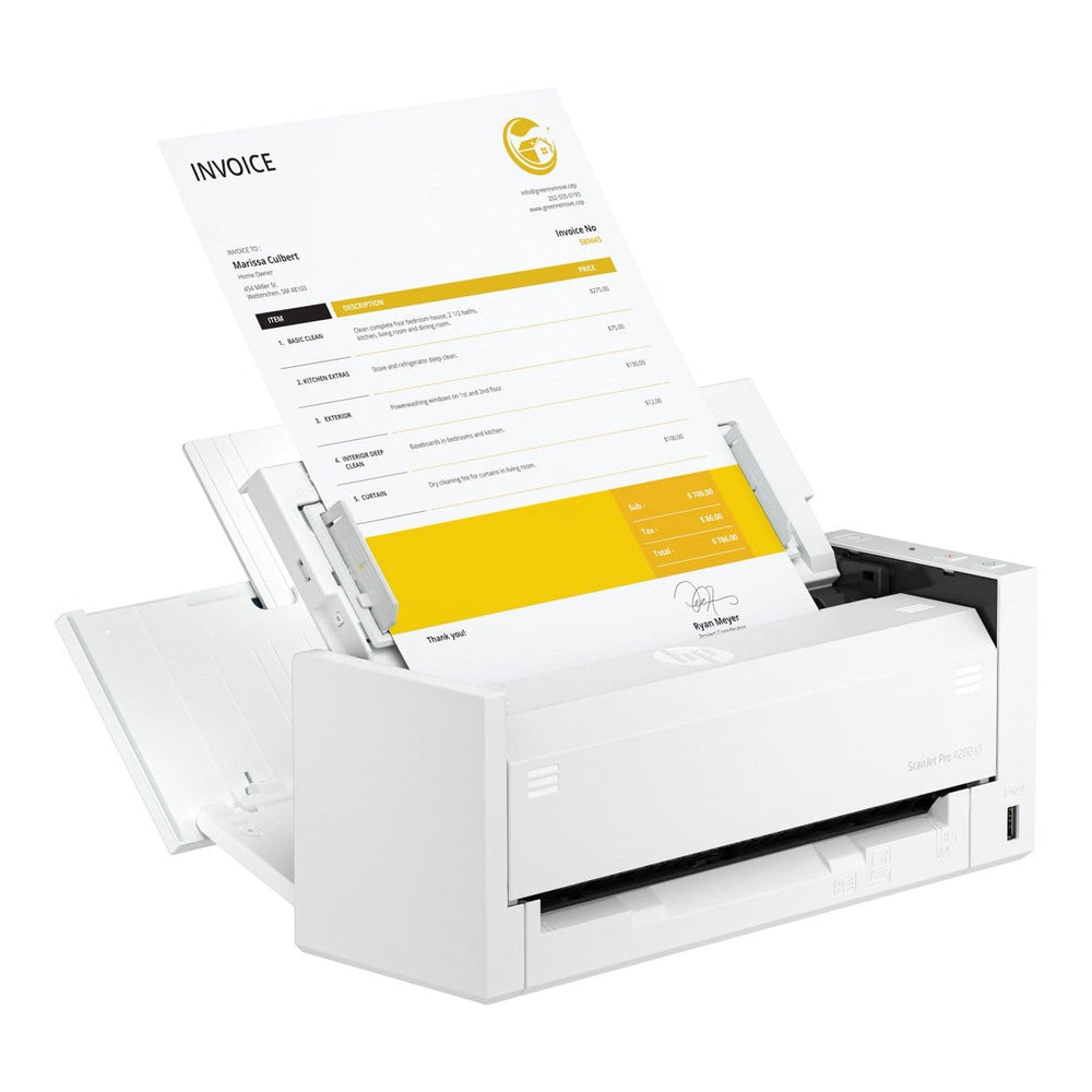 Stay ahead of the demands of your business using the HP ScanJet Pro 4200 s1. Zip through front-desk paperwork with workflow automation and scan a variety of documents from passports to invoices with exceptional clarity—all in a compact design.