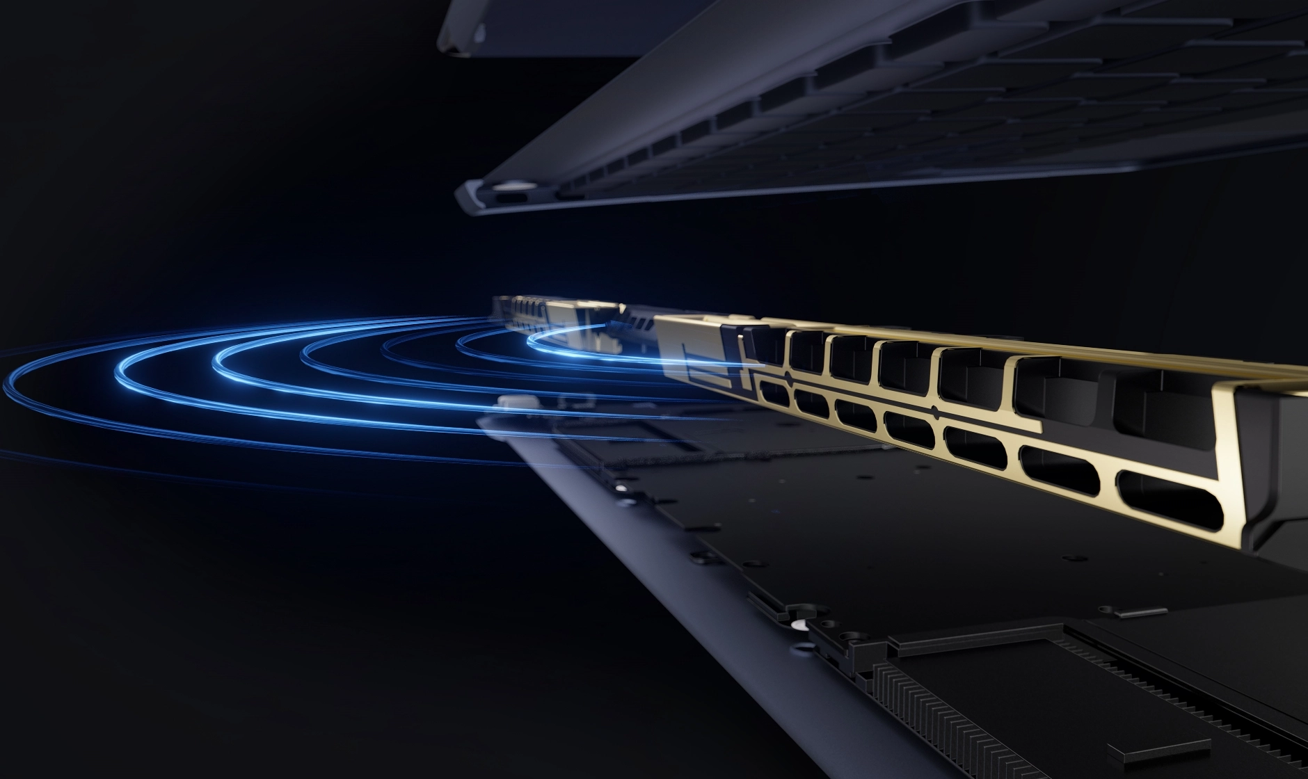HUAWEI MateBook X Pro's HUAWEI Shark Fin heat dissipation system is bolstered by booster fans and a 3D air ventilation setup, with two air exhaust vents and four air intake vents, to keep operations uber-cool and whisper-quiet, even when you're churning out work!