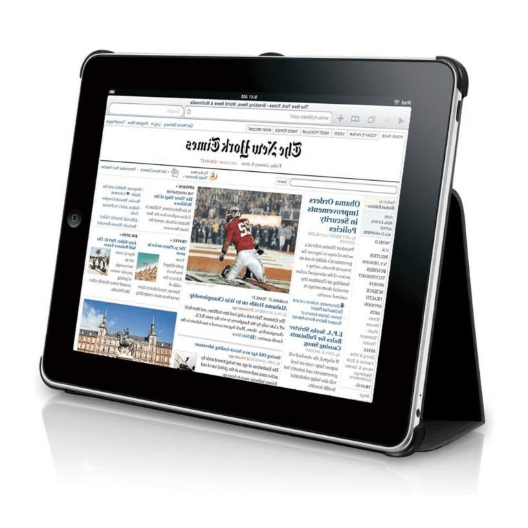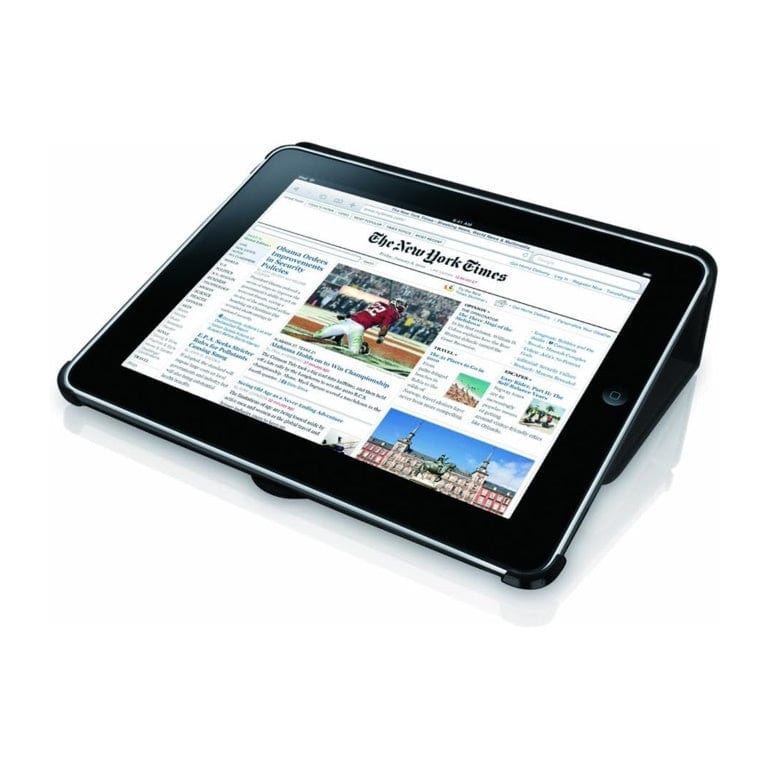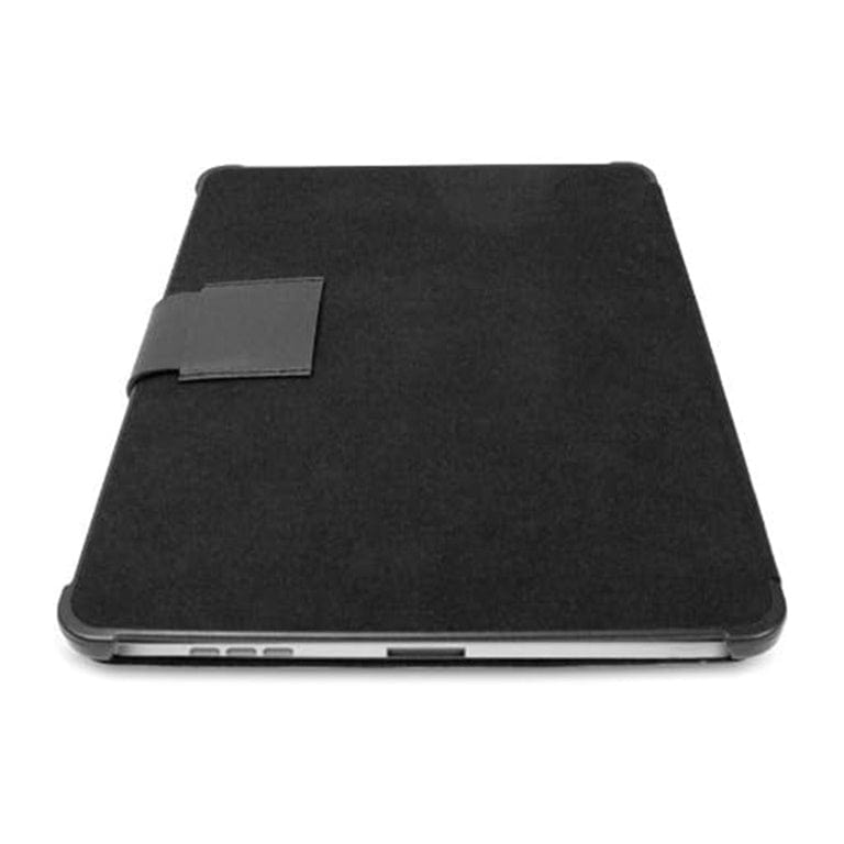 Functions both as a protective travel case, as well as viewing stand to improve typing and viewing comfort