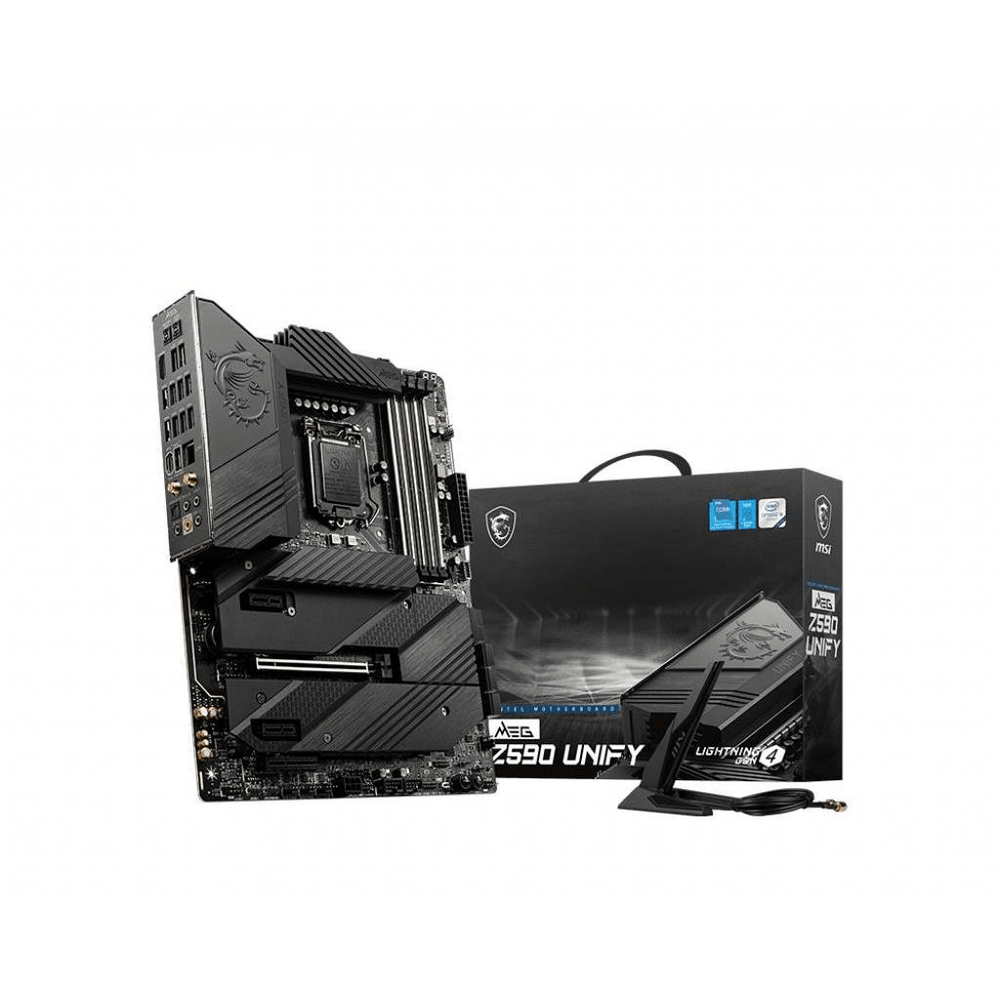 MSI MEG Z590 UNIFY. Processor manufacturer: Intel, Processor socket: LGA 1200, Compatible processor series: Intel® Celeron®, Intel® Core™ i3, Intel Core i5, Intel Core i7, Intel Core i9, Intel® Pentium®. Supported memory types: DDR4-SDRAM, Maximum internal memory: 128 GB, Memory slots type: DIMM. Supported storage drive interfaces: M.2,SATA III, Supported storage drive types: HDD & SSD. Parallel processing technology support: 2-Way CrossFireX, Maximum resolution: 3840 x 2160 pixels. Ethernet interface type: 2.5 Gigabit Ethernet, LAN controller: Intel I225-V, Top Wi-Fi standard: Wi-Fi 6 (802.11ax)
