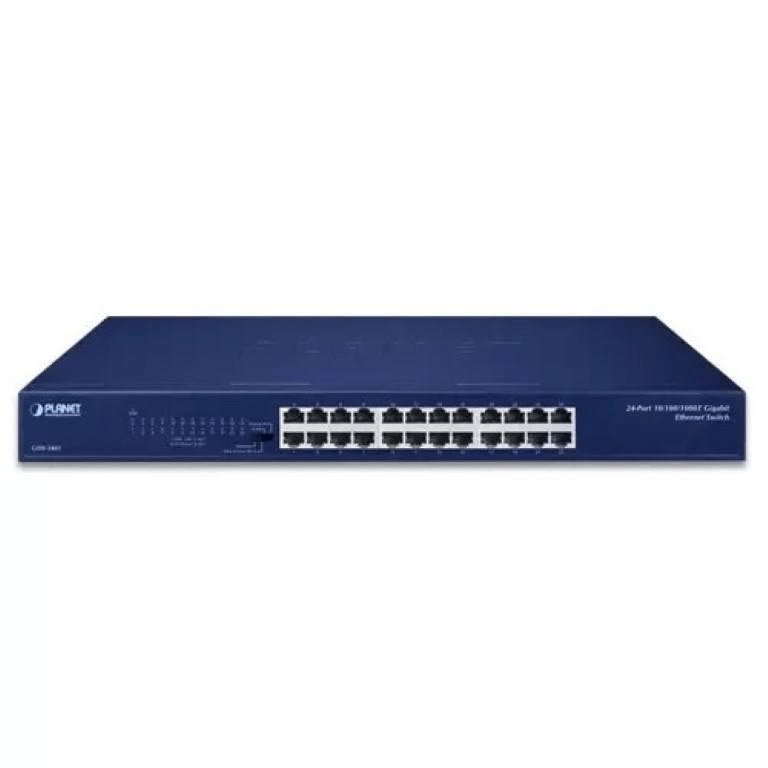 PLANET GSW-2401 Gigabit Ethernet Switch provides 24 RJ45 10/100/1000Mbps ports for high-speed network connectivity. It can automatically identify and determine the correct transmission speed and half/full duplex mode of the attached devices with its 24 Gigabit ports that support 9K jumbo frame feature. Therefore, the GSW-2401 can handle extremely large amounts of data transmission in a secure topology linking to a backbone or high-power servers.