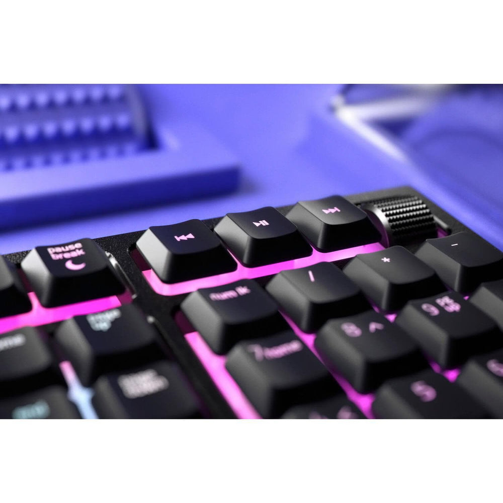 Razer Ornata V2. Keyboard form factor: Standard. Keyboard style: Straight. Keyboard key switch: Semi-mechanical key switch, Keyboard layout: QWERTY. Backlight type: RGB LED, Wrist rest. Recommended usage: Gaming. Product colour: Black