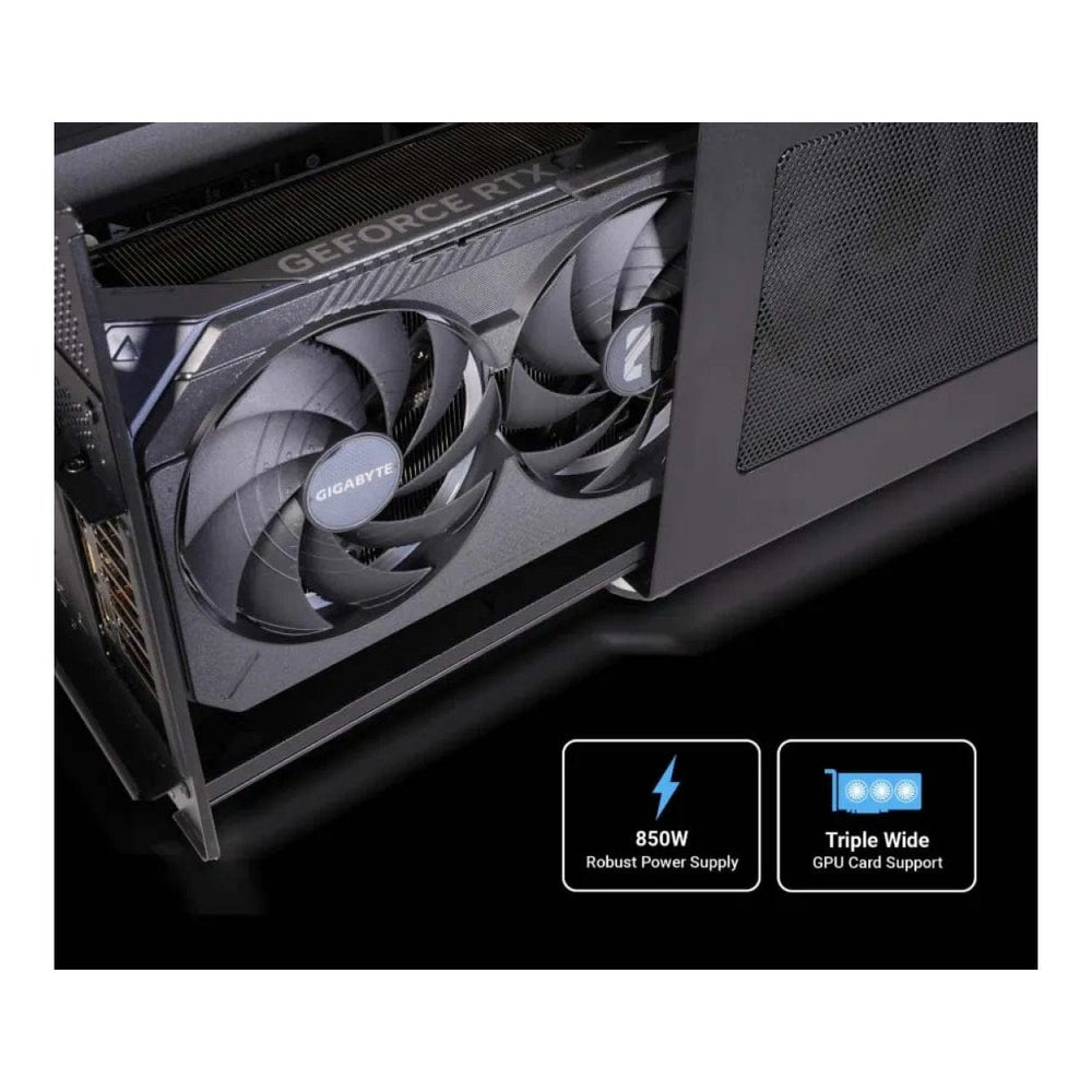 Built to handle the most power-hungry triple-width GPUs, Breakaway Box 850T5 is a plug-and-play upgrade that boosts performance for video production, demanding games, and AI workloads. It supports Thunderbolt-compatible GPUs including triple-wide NVIDIA GeForce RTX 50, 40, or 30 series; or AMD Radeon RX 9000, 7000, or 6000 series GPU cards. Each GPU generation brings more compute power with higher Watt power needs. With its robust 850W power supply, the Breakaway Box 850 T5 easily supports today’s top-tier GPUs and is ready for tomorrow’s even more demanding cards.