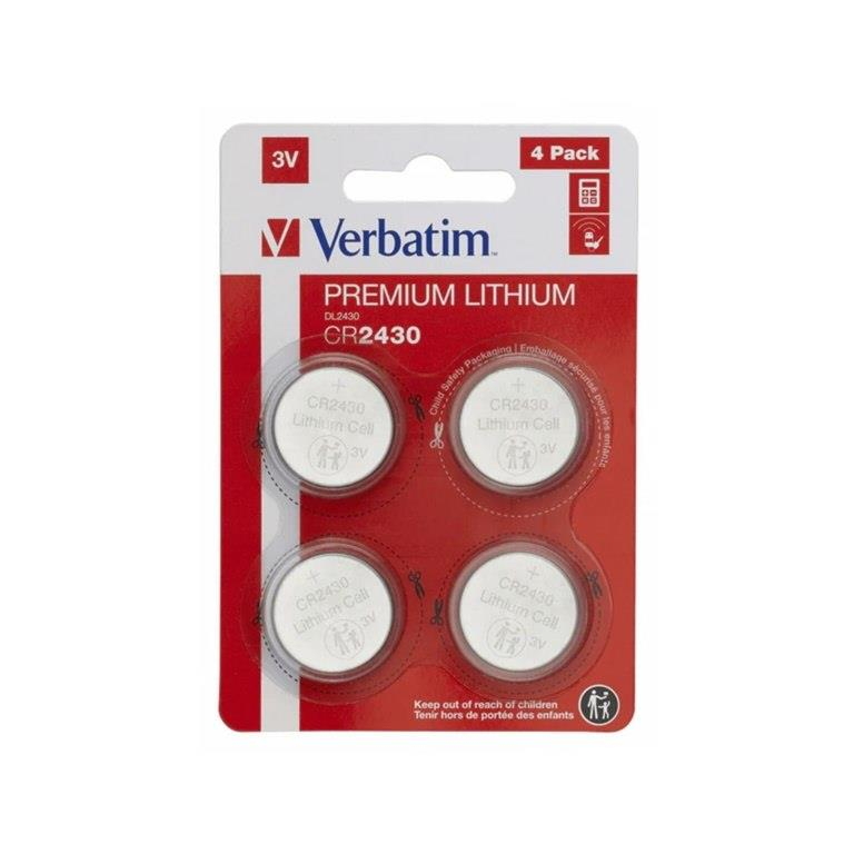 Verbatim CR2430 3V Lithium Coin Batteries 4-pack 49534